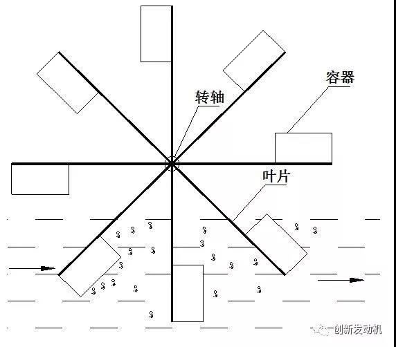 缺氧是河道污染的一个重要特点,曝气增氧是一种重要的河道治理措施。曝气水车依靠水流推动将水车叶片末端的容器带入水面冒出气泡下释放氧气,增加河水溶解氧(容器进入水面下如同空瓶子放到水面下会冒出气泡)。
