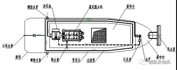 如图7所示,本文所提的高效蓝藻打捞船的主要结构包括船体、滗水器、水泵、过滤管道、加药池、藻泥脱水机和排水管排水管。由滗水器收集船头方向的表层藻水至藻水仓,通过水泵加压进入过滤管道脱水后输送至加药池及藻泥脱水机,产生的藻饼装入藻饼仓,过滤管道以及藻泥脱水机脱出的尾水通过排水管从船尾方向排出。定期通过提升滗水器、切换阀门、利用藻泥脱水机尾水反冲洗过滤管道。蓝藻打捞结束后,依靠水泵和反洗管将藻水仓、管道仓和加药池内的水排至船体外,将藻饼运至岸上处理。